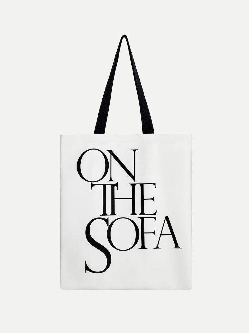 Simple and refined, this is no ordinary tote. Crafted with sturdy cotton it expertly retains its streamlined silhouette. Styled with our iconic “On The Sofa” logo and available in five timeless colors this bag is sure to become an everyday favorite.