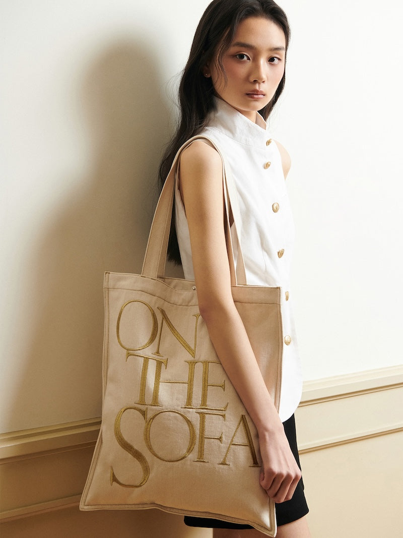 Elevating from our signature tote, Sofa baobao Helios and Artemis derive their names from the personifications of the Sun and the Moon in ancient Greek mythology. Crafted from heavy-weight canvas intricately embroidered with metallized logos and threads, they shimmer with the ethereal glow of dawn and dusk. Style with them for a combination of elegance and ease.