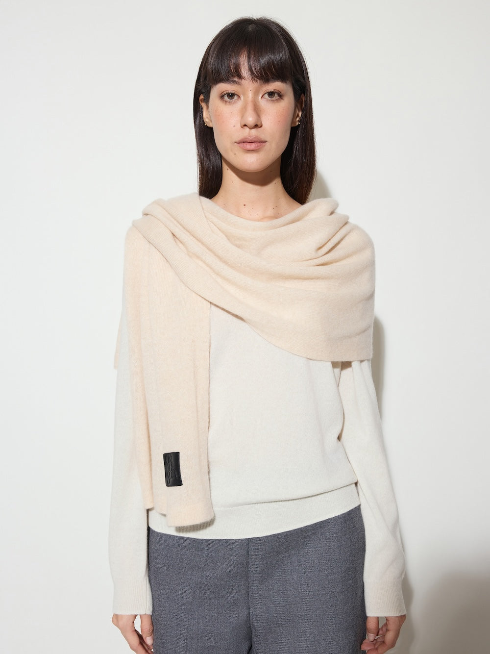 Crafted from high quality cashmere sourced from Inner Mongolia, our Four Seasons Wrap features a minimalist design, with an embossed leather patch stitched on its one end. Available in four timeless colors, it goes with nearly any outerwear. Let Sofa Four Seasons Wrap embrace you for years to come.