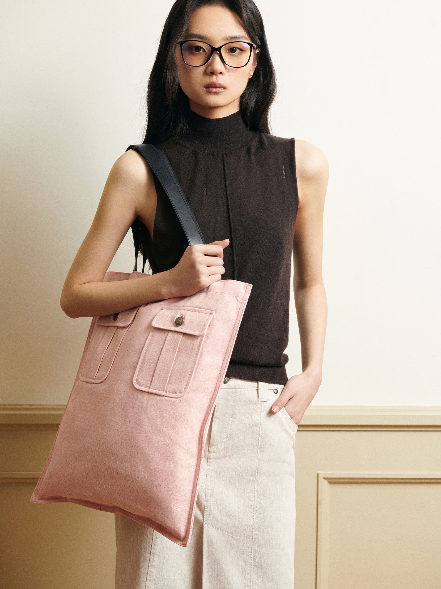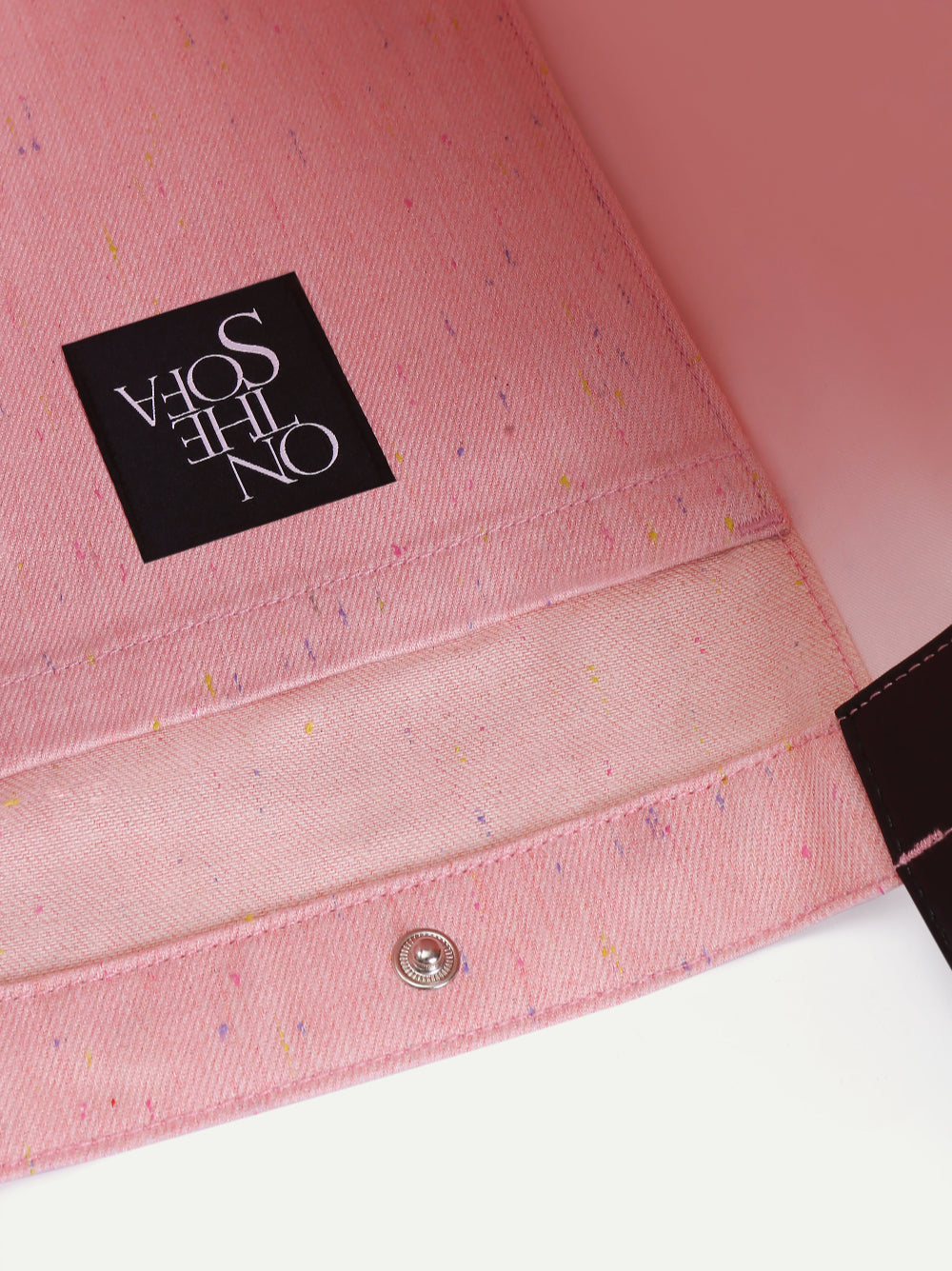 Encapsulate all your flavorful memories within Sofa Safari. The collection embraces a blend of style and durability, crafted from resilient cotton-canvas adorned with a captivating abstract pattern in vibrant, spliced colors. The distinctive design of symmetrical cargo pockets with embossed brass buttons adds a utilitarian and enduring touch. Carry it through its supple leather straps.
