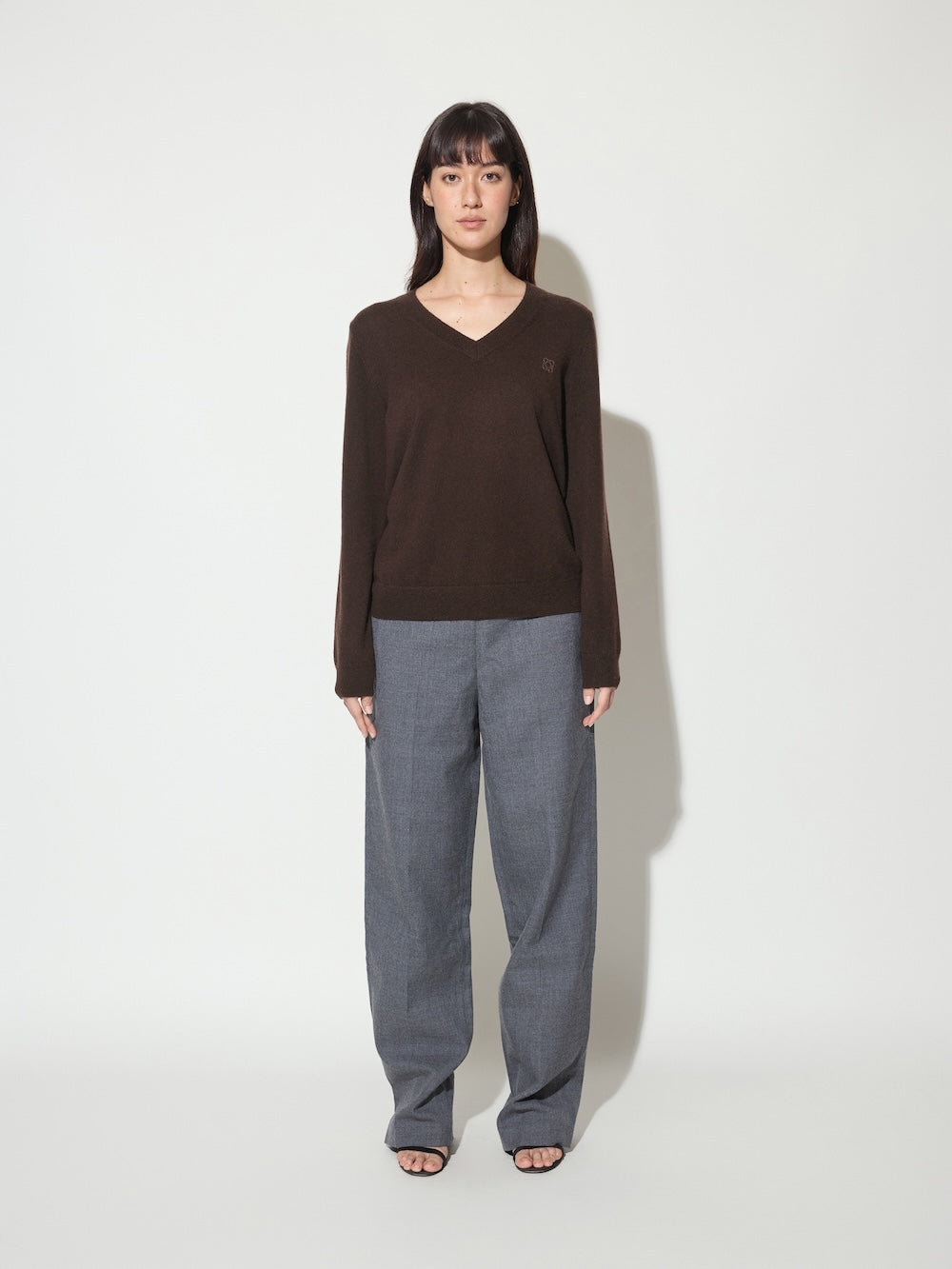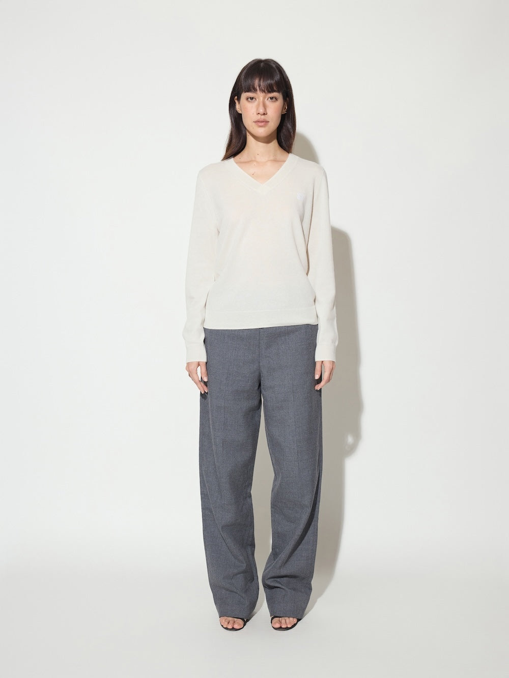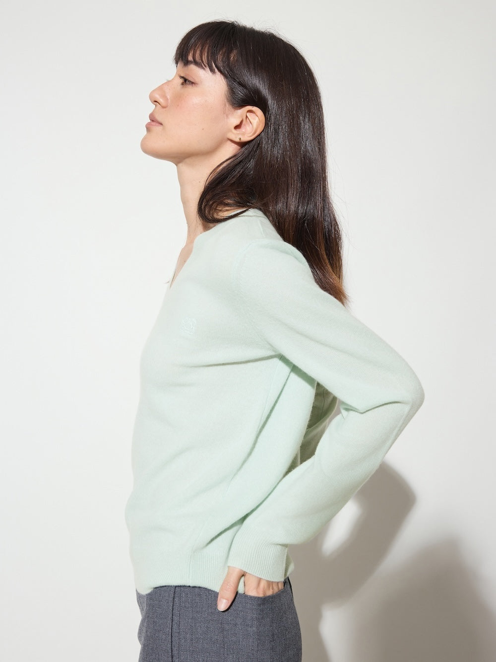 Crafted from 100% cashmere, ‘The Curator’ V-neck sweater collection features an innovative silhouette, providing a flattering fit and effortless comfort. The V-neck design enhances its modern charm, exuding both elegance and ease.