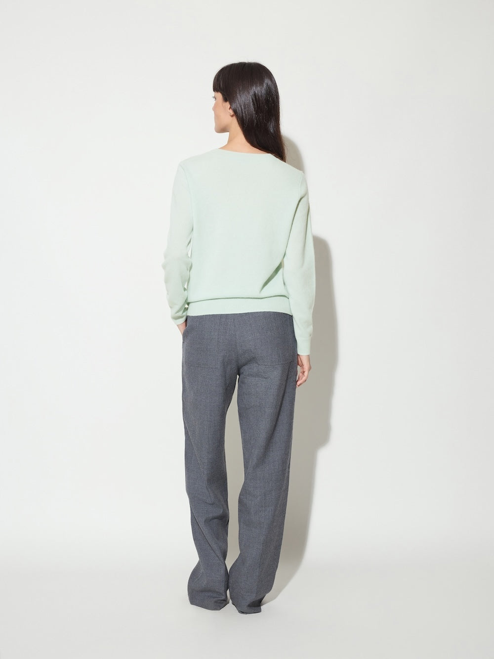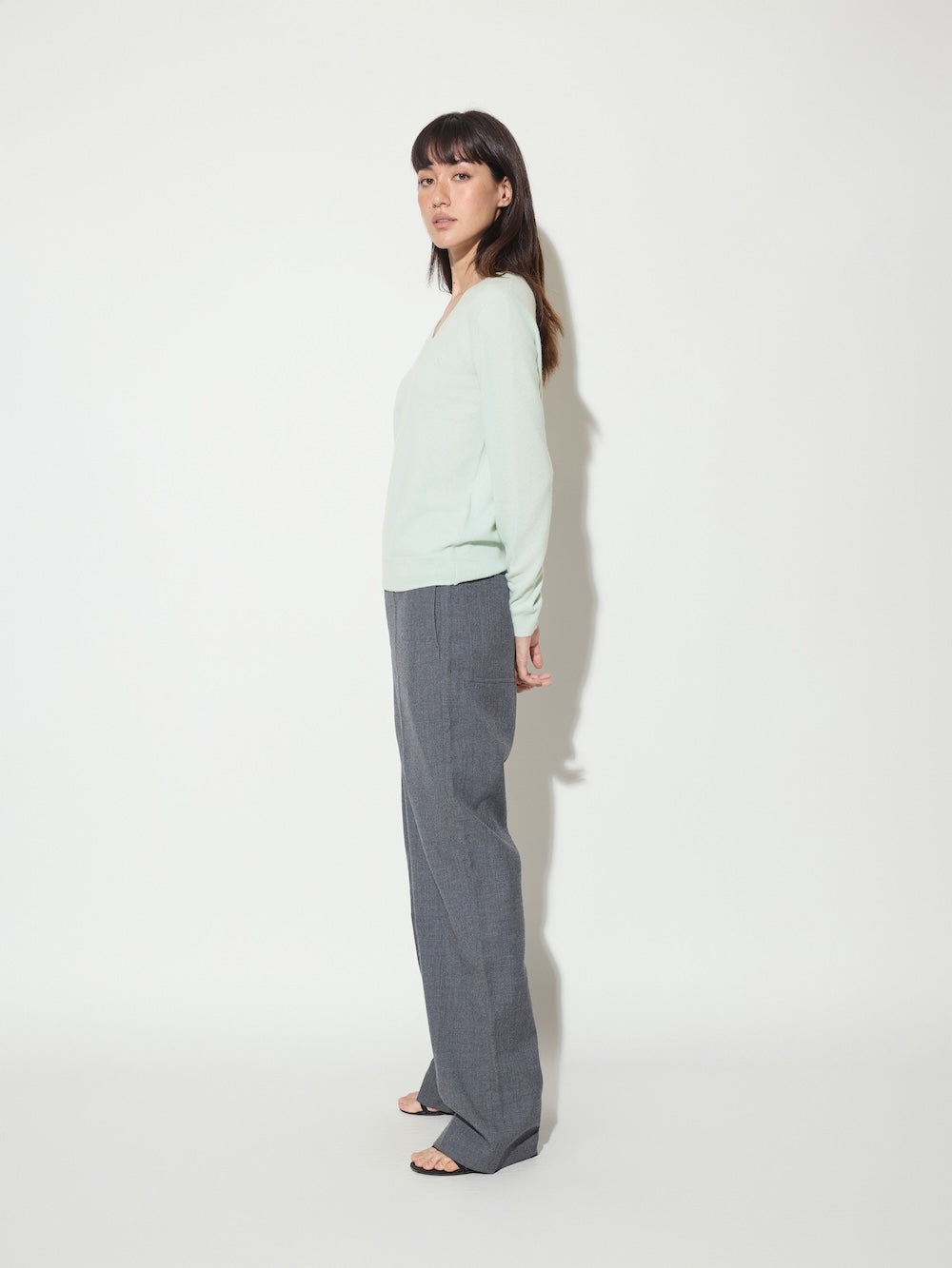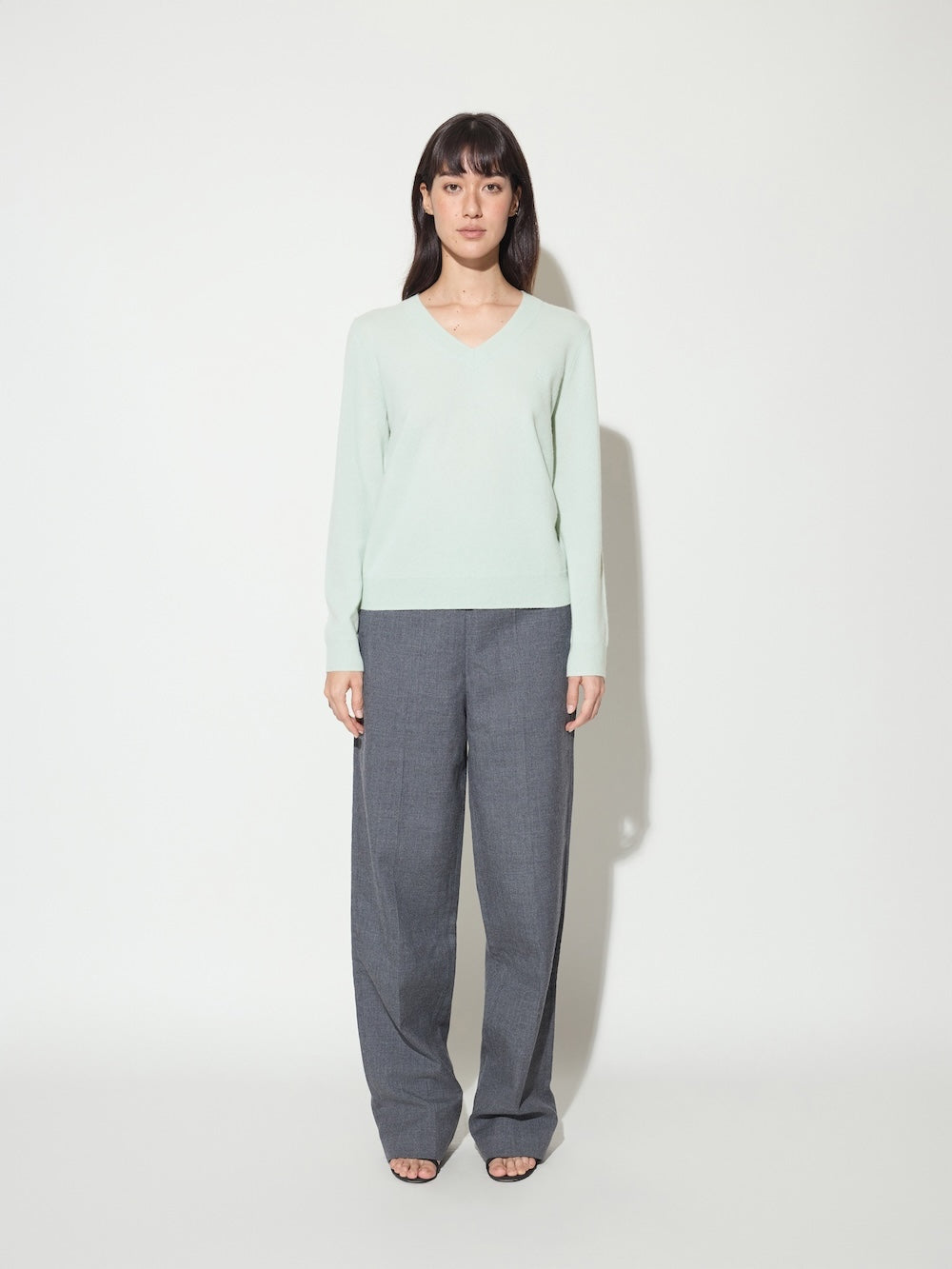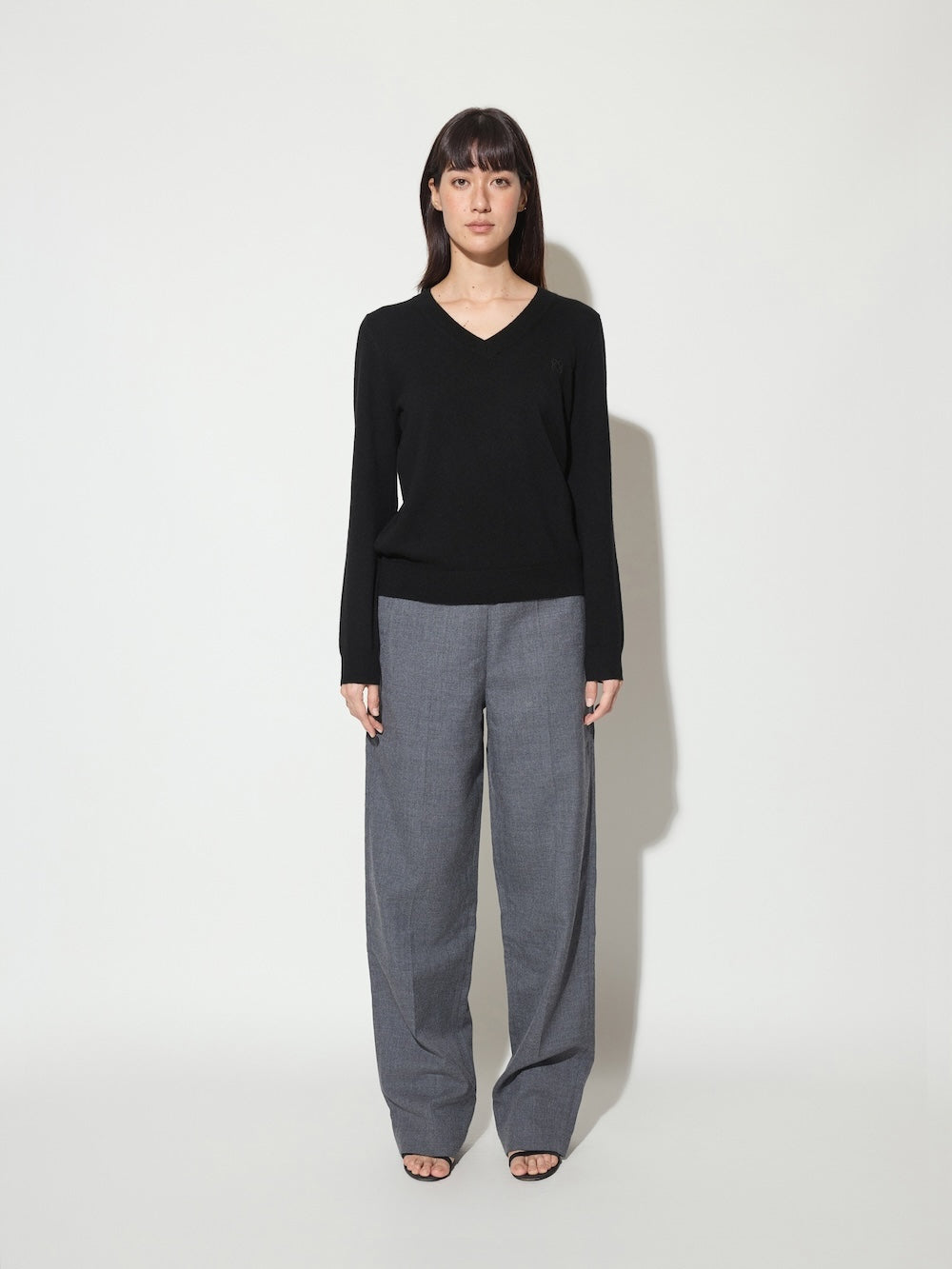 Crafted from 100% cashmere, ‘The Curator’ V-neck sweater collection features an innovative silhouette, providing a flattering fit and effortless comfort. The V-neck design enhances its modern charm, exuding both elegance and ease.